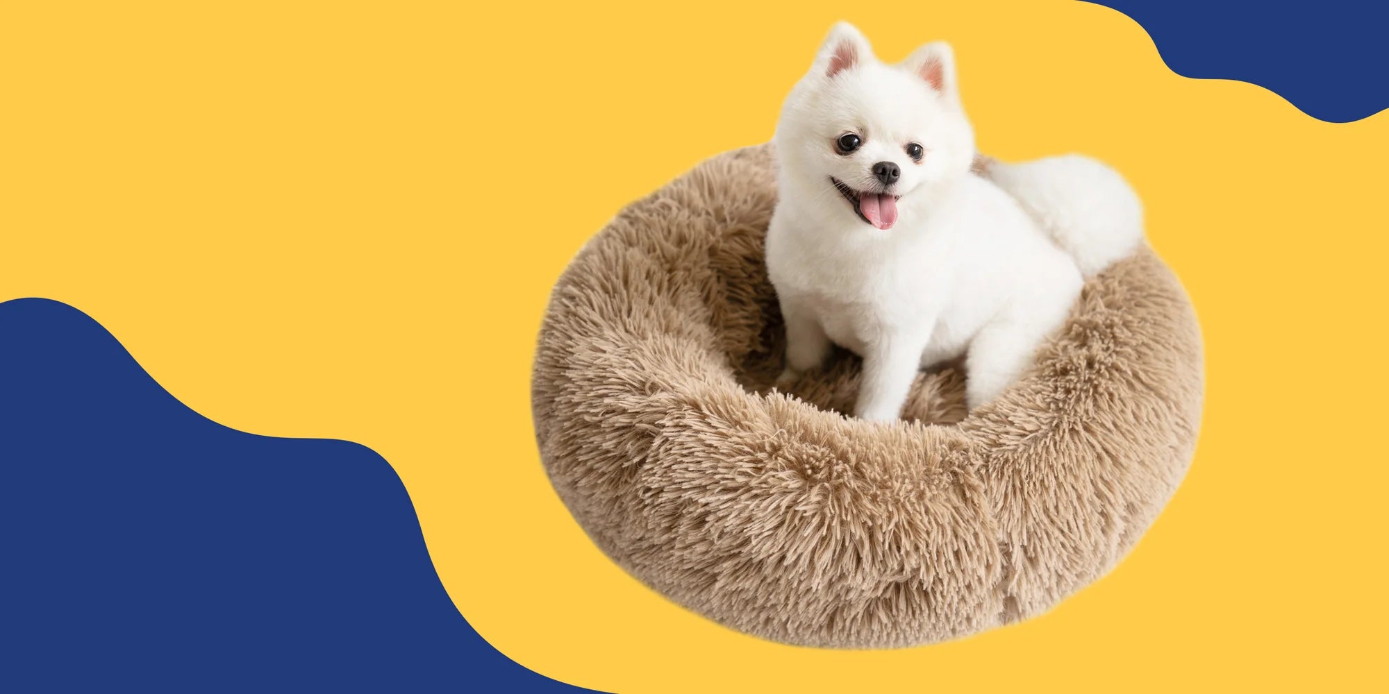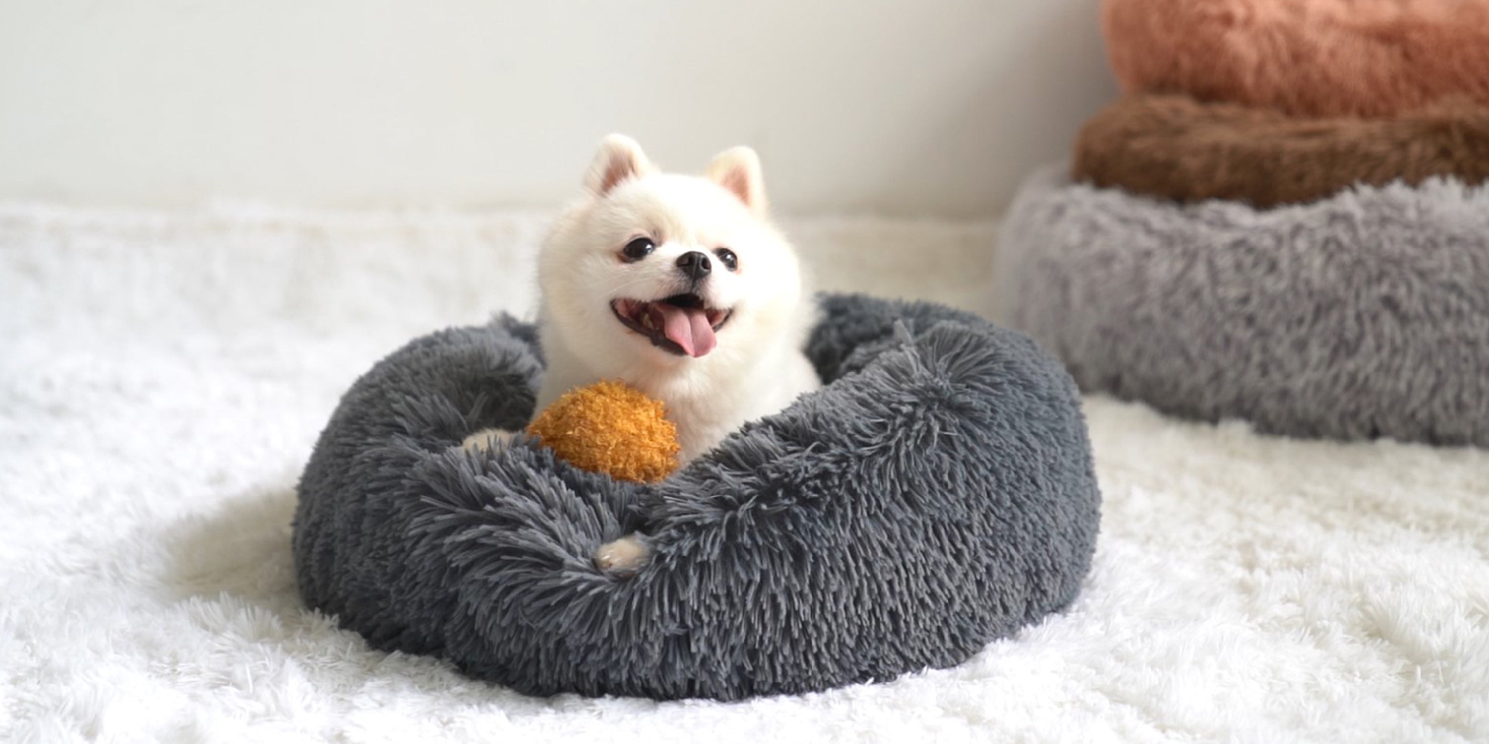 Round plush dog bed in the shape of a donut