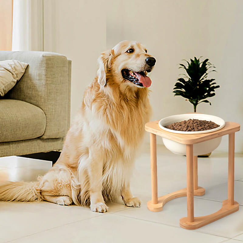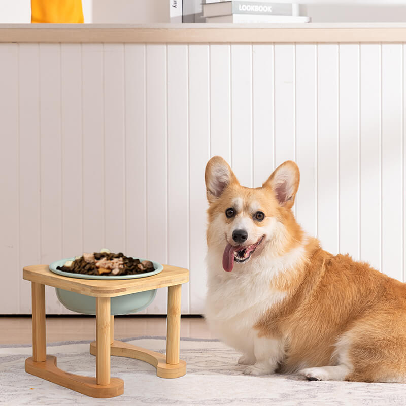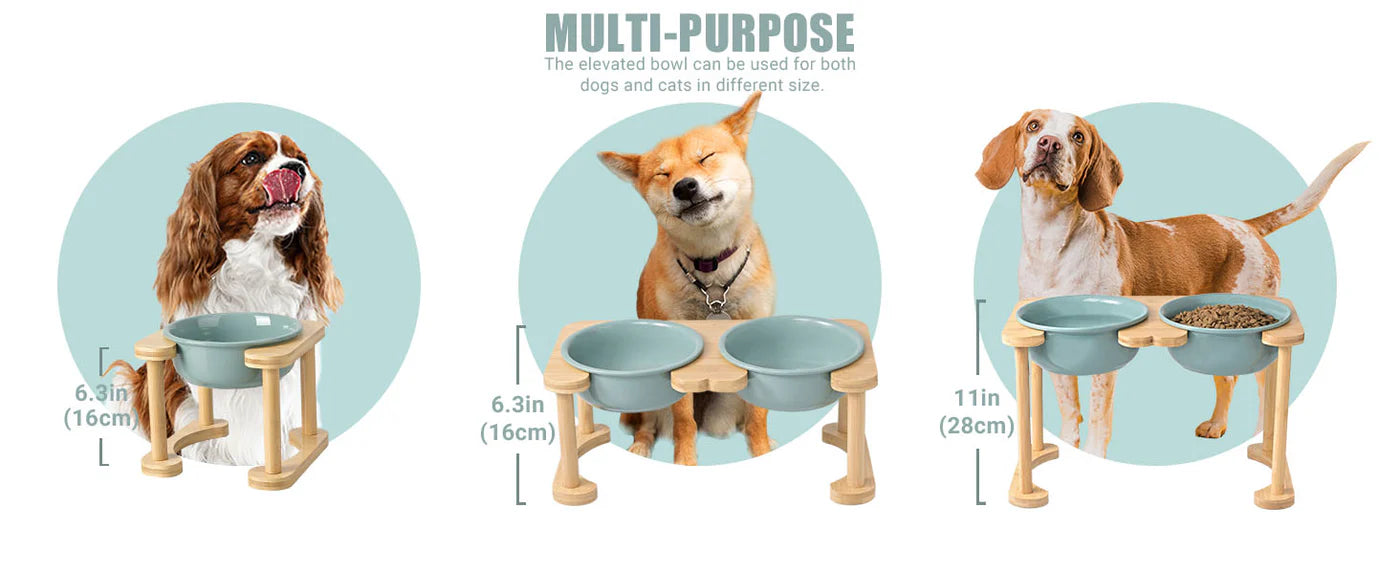 Non-Slip Design: Heavier ceramic bowl with stable,waterproof wooden construction prevents bowls from sliding away while medium and large dogs eat.