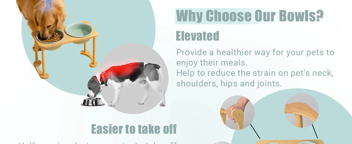 Healthier Eating Posture: Elevated dog bowls provide dogs with correct eating posture,improved reducing bloating and neck strain with dogs,and prevents indigestion problem.