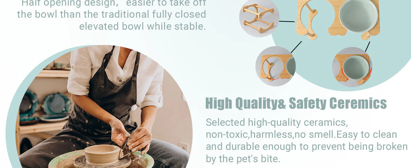 Our ceramics, crafted using traditional techniques, are food-grade, non-toxic, and tasteless, ensuring safe feeding for your pet.