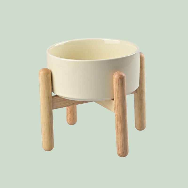 Elevated Dog Ceramics Bowl with Wooden Stand