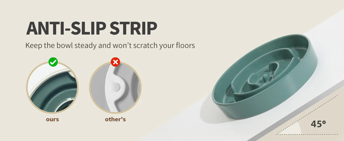 ● STABLE AND NON-SLIP - This slow feeder dog bowl is a good choice for the messy eater. The weight of this dog feeder is over 3 lbs to prevent strong dogs from nudging bowls around the floor and tipping the contents out.
