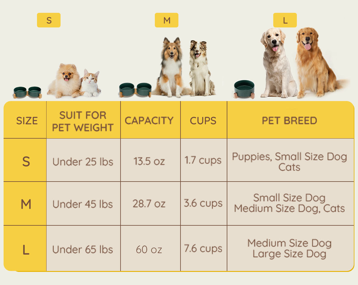 We offer bowls in various capacities, with weights adjusted to prevent your dog from moving the bowl and spilling food, while still being manageable for the owner.